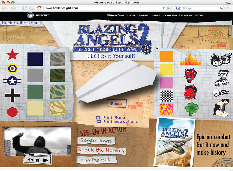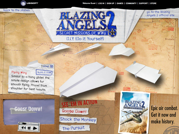 To promote the game Blazing Angels II, Ubisoft wanted a microsite experience that would stand out in the cluttered arena of game launches.