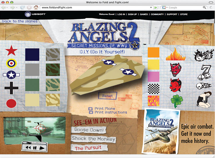 To promote the game Blazing Angels II, Ubisoft wanted a microsite experience that would stand out in the cluttered arena of game launches.